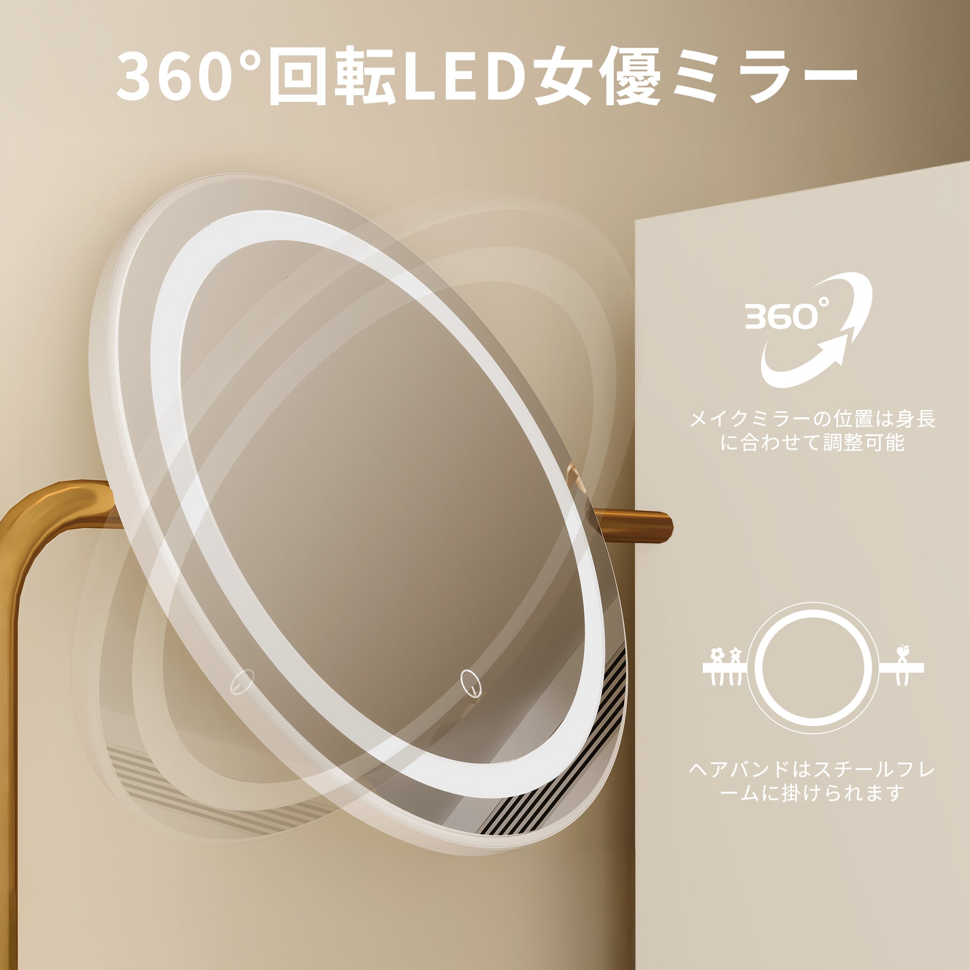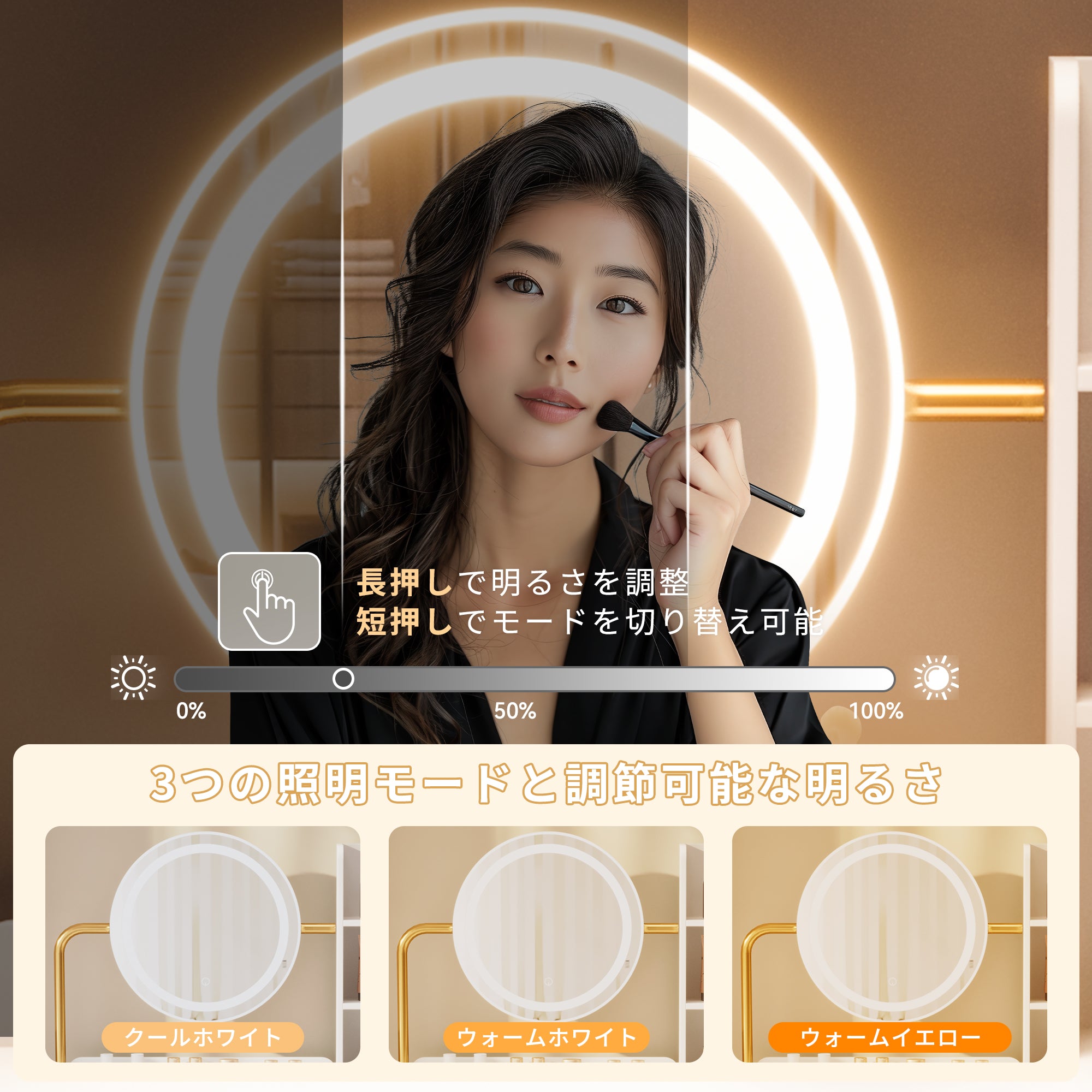 - 【インスタ映えするミラー】女優ミラーと照明付き三色LEDライトを備えた化粧台は、最適な照明を提供し、リアルな美しい顔を映し出します。広い視野でメイクアップやヘアスタイルの細部までしっかり確認でき、自信を持って一日をスタートできます。また、クールホワイト、ウォームホワイト、ウォームイエローの三つの照明モードで、どんな角度でもインスタ映えする写真を撮ることができます。
