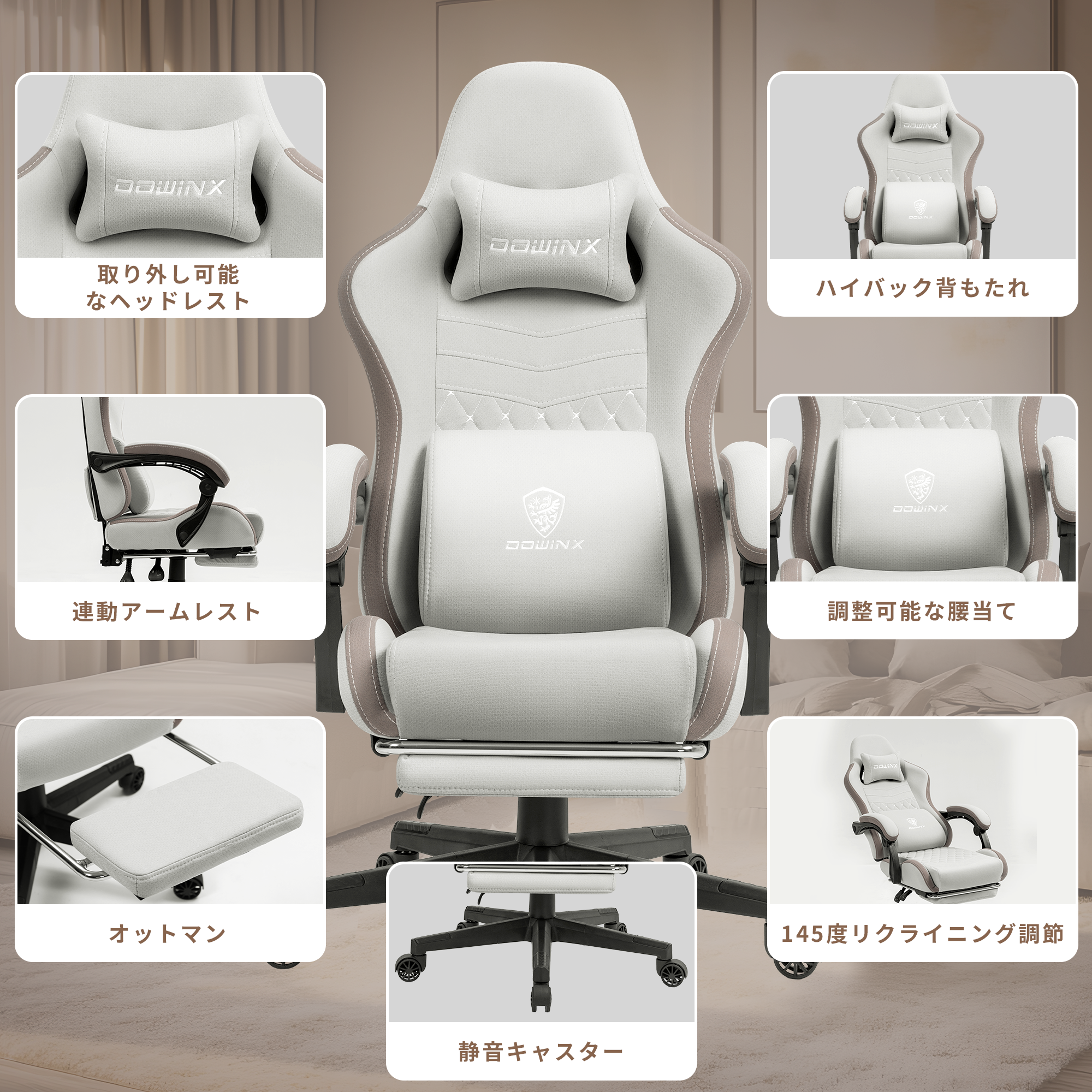 Dowinx ファブリックゲーミングチェア LS-6658D ベージュ