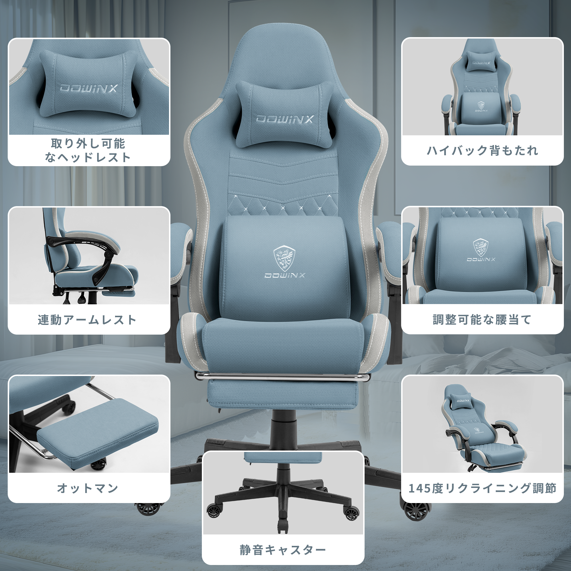 Dowinx ファブリックゲーミングチェア LS-6658D 青灰色