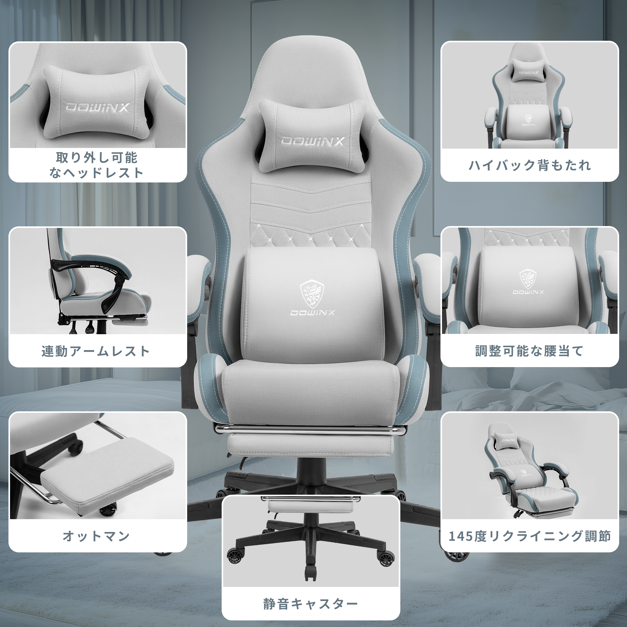 Dowinx ファブリックゲーミングチェア LS-6658D 灰青
