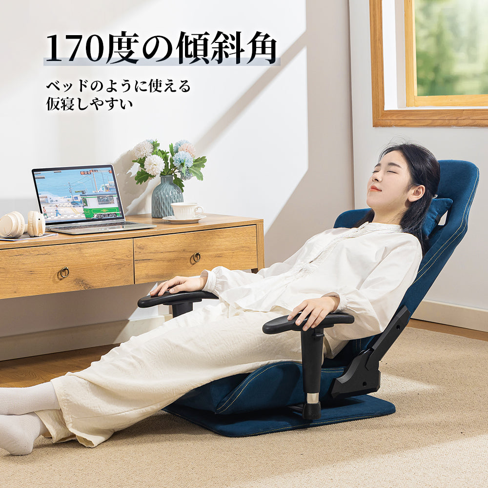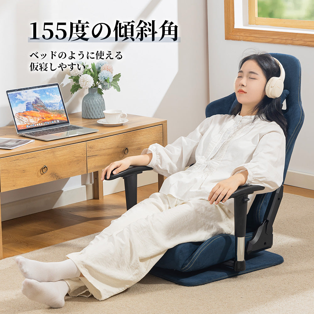 • 【多段階リクライニングで自由な姿勢に】背もたれは最大約155°までリクライニング可能。読書・映画鑑賞・お昼寝など、シーンに合わせて簡単に角度を調整できます。頭部までしっかり支えるハイバック仕様で、全身を預けてくつろげます。